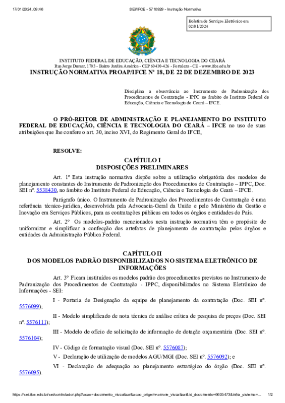 AbertaInstrução Normativa PROAP/IFCE Nº 18, DE 22 DE DEZEMBRO DE 2023