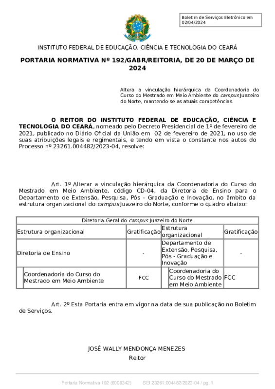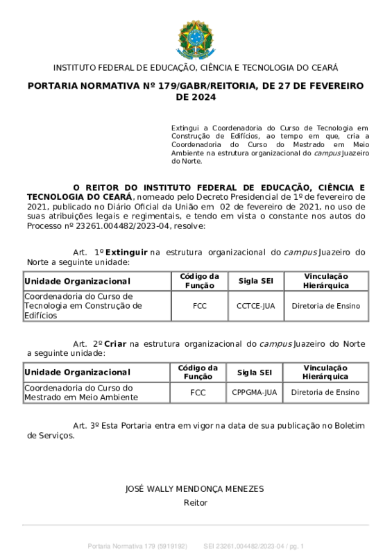 AbertaPORTARIA NORMATIVA Nº 179/GABR/REITORIA, DE 27 DE FEVEREIRO DE 2024