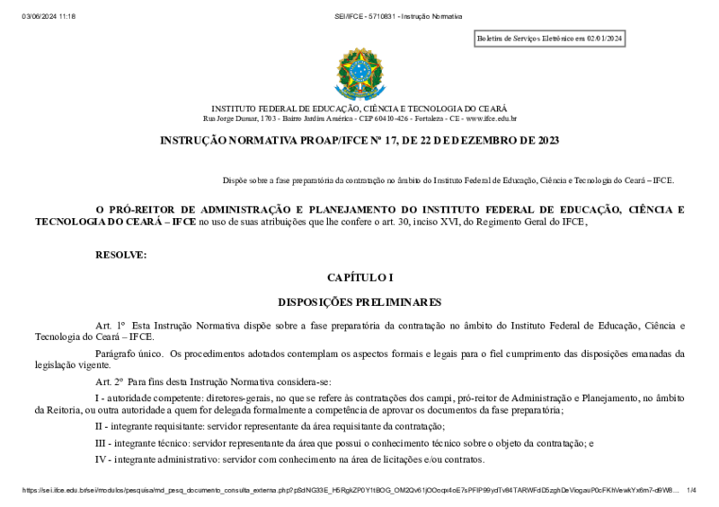 AbertaInstrução Normativa PROAP/IFCE Nº 17, DE 22 DE DEZEMBRO DE 2023