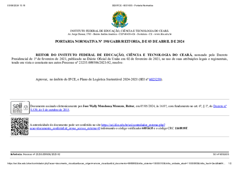 Aprovado pela PORTARIA NORMATIVA Nº 198/GABR/REITORIA, DE 03 DE ABRIL DE 2024.