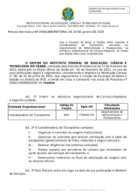 AbertaPortaria Normativa Nº 269/GABR/REITORIA, DE 20 DE janeiro DE 2025