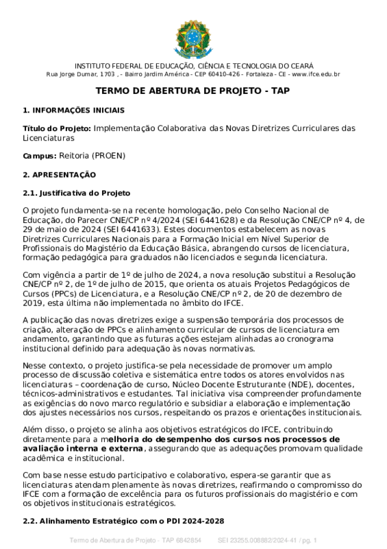 Além disso, o projeto se alinha aos objetivos estratégicos do IFCE, contribuindo diretamente para a melhoria do desempenho dos cursos nos processos de avaliação interna e externa, assegurando que as adequações promovam qualidade acadêmica e institucional.