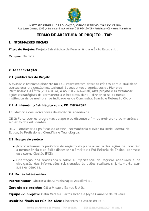 A evasão e retenção discente no IFCE representam desafios críticos para a qualidade educacional e a gestão institucional. Baseado nos diagnósticos do Plano de Permanência e Êxito (2017-2024) e no PDI 2024-2028, este projeto visa fortalecer ações estratégicas de permanência e êxito estudantil, alinhando-se às metas institucionais de melhorar os indicadores de Conclusão, Evasão e Retenção Ciclo.