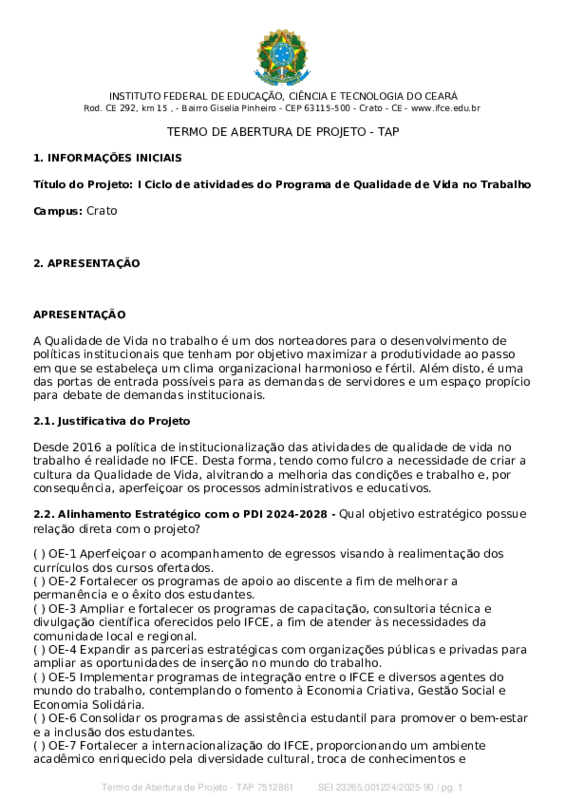 Desde 2016 a política de institucionalização das atividades de qualidade de vida no trabalho é realidade no IFCE. Desta forma, tendo como fulcro a necessidade de criar a cultura da Qualidade de Vida, alvitrando a melhoria das condições e trabalho e, por consequência, aperfeiçoar os processos administrativos e educativos.