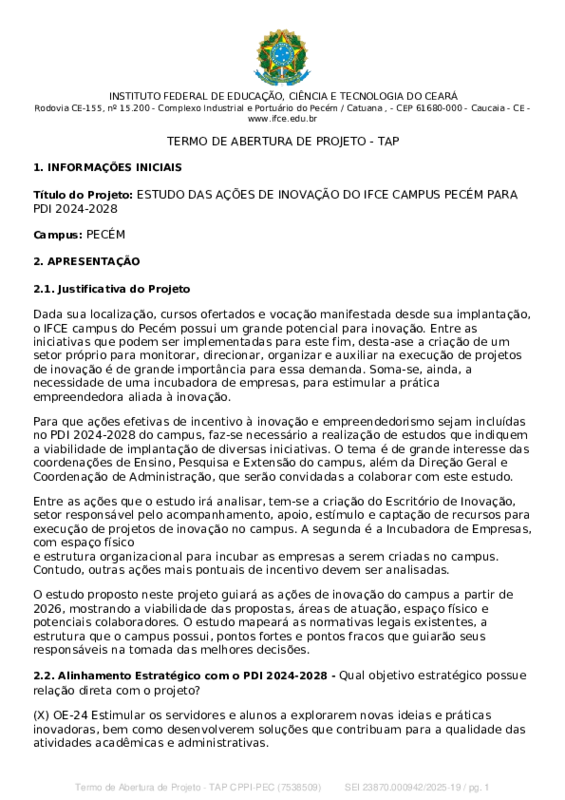 AbertaESTUDO DAS AÇÕES DE INOVAÇÃO DO IFCE CAMPUS PECÉM PARA PDI 2024-2028
