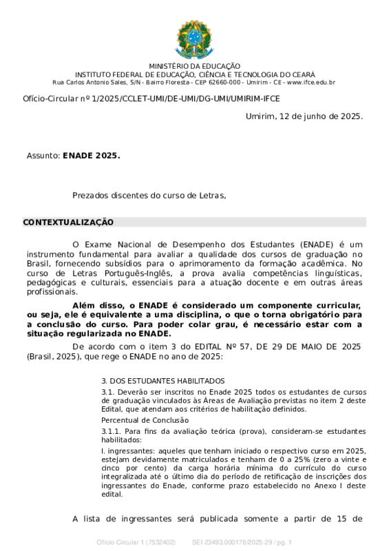 FechadaProjeto Estratégico #155700: Acompanhamento do ENADE 2025 - Curso de Letras Português-Inglês