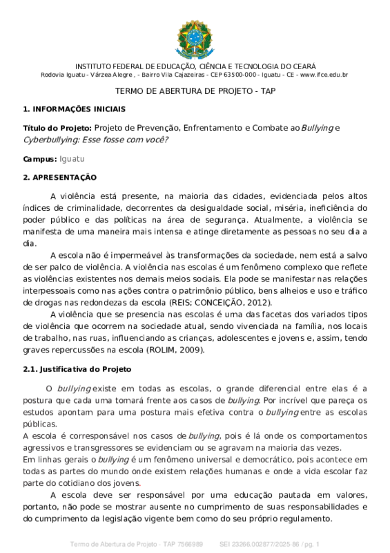 FechadaProjeto de Prevenção, Enfrentamento e Combate ao Bullying e Cyberbullying: Esse fosse com você?