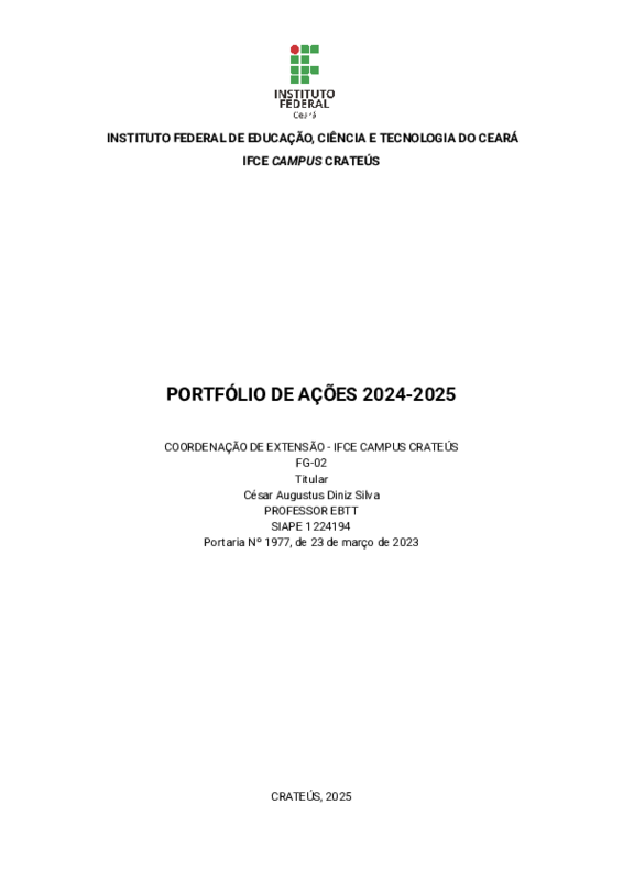 Informativo das ações da extensão 01/2024-06/2025, elaborado para acompanhamento da gestão e servidores do campus. Disponibilizado à gestão do campus.
