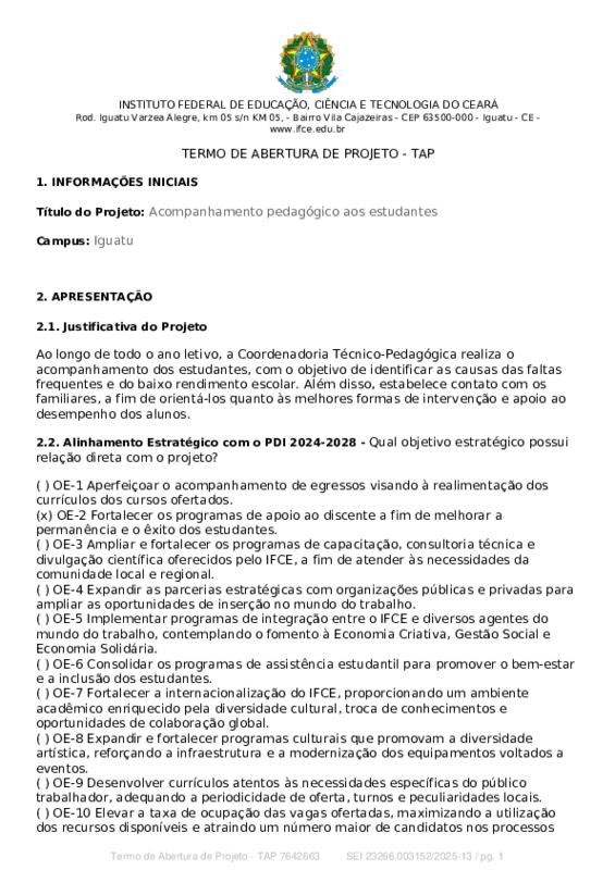 2.2. Alinhamento Estratégico com o PDI 2024-2028 - Qual objetivo estratégico possui relação direta com o projeto?