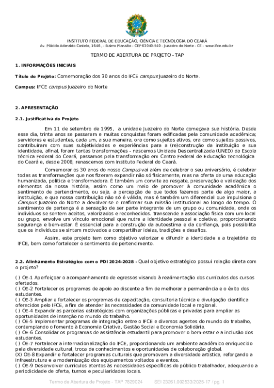 Assim, este projeto tem como objetivo valorizar e difundir a identidade e a trajetória do IFCE, bem como fortalecer o sentimento de pertencimento.
