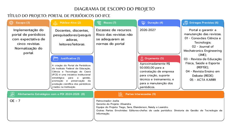Justificativa: A criação do Portal de Periódicos do Instituto Federal de Educação, Ciência e Tecnologia do Ceará (IFCE) é uma iniciativa institucional estratégica para a gestão, promoção e preservação da produção científica dos periódicos criados na Instituição.