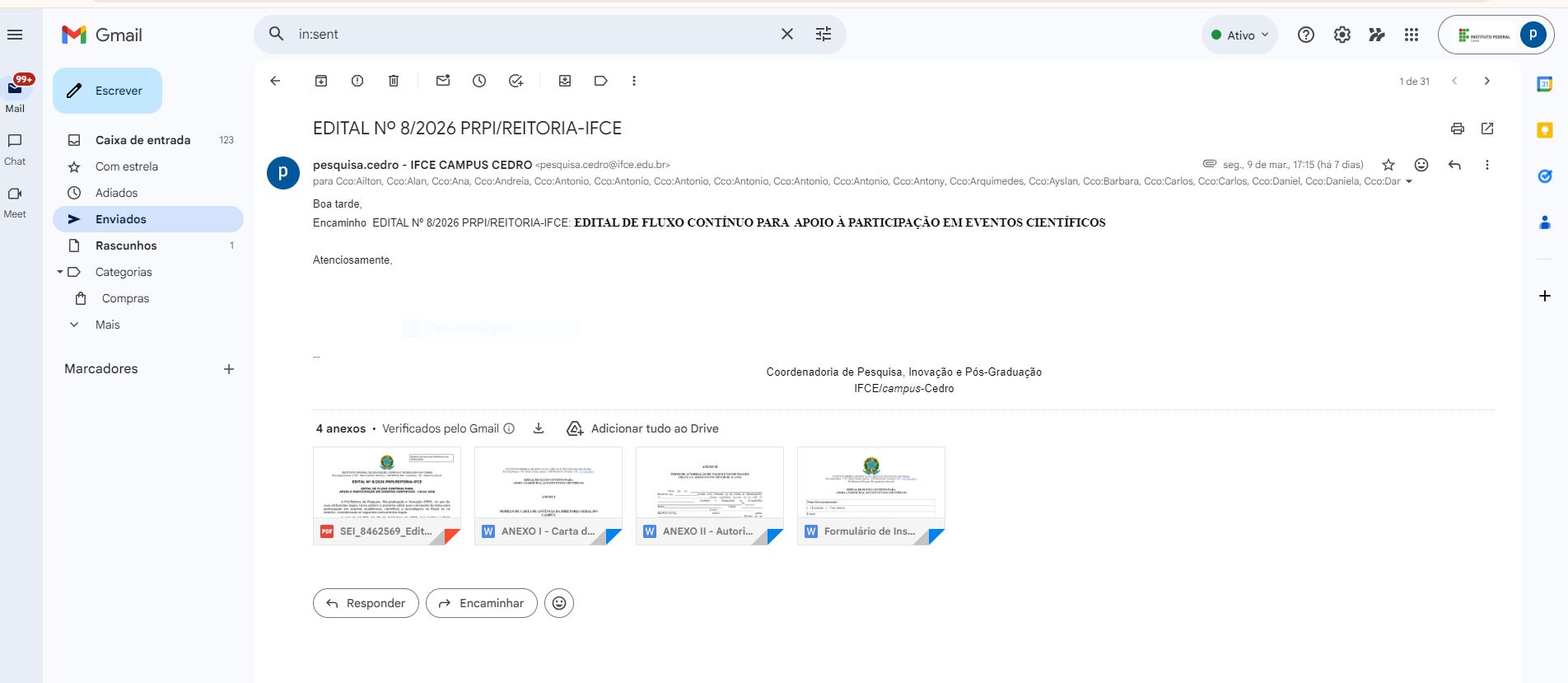 DIVULGAÇÃO DE EDITAL Nº 8/2026 PRPI/REITORIA-IFCE: EDITAL DE FLUXO CONTÍNUO PARA APOIO À PARTICIPAÇÃO EM EVENTOS CIENTÍFICOS