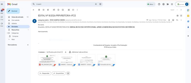 Divulgação de EDITAL Nº 8/2026 PRPI/REITORIA-IFCE: EDITAL DE FLUXO CONTÍNUO PARA APOIO À PARTICIPAÇÃO EM EVENTOS CIENTÍFICOS