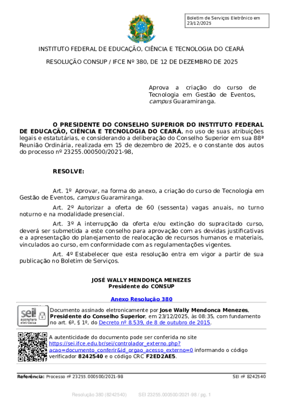 Aprovação do Curso Superior em Tecnologia em Gestão de Eventos