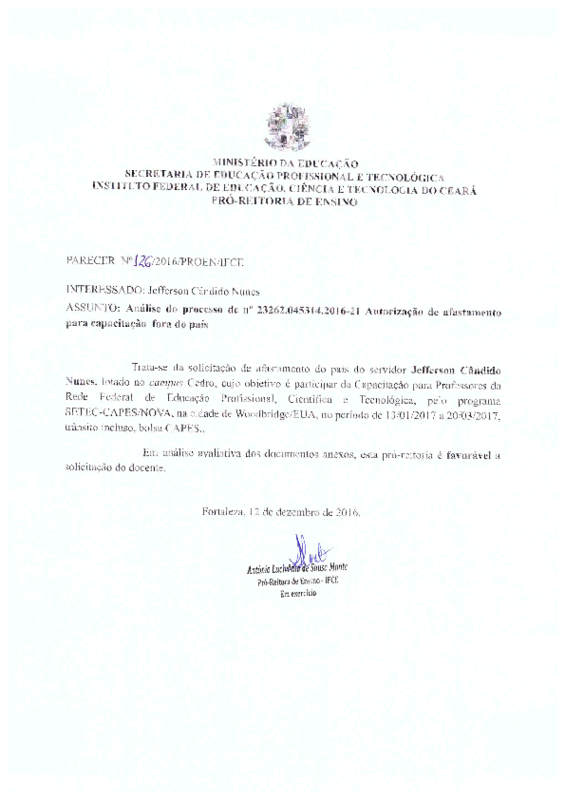 AbertaParecer No 126/2016/PROEN/IFCE