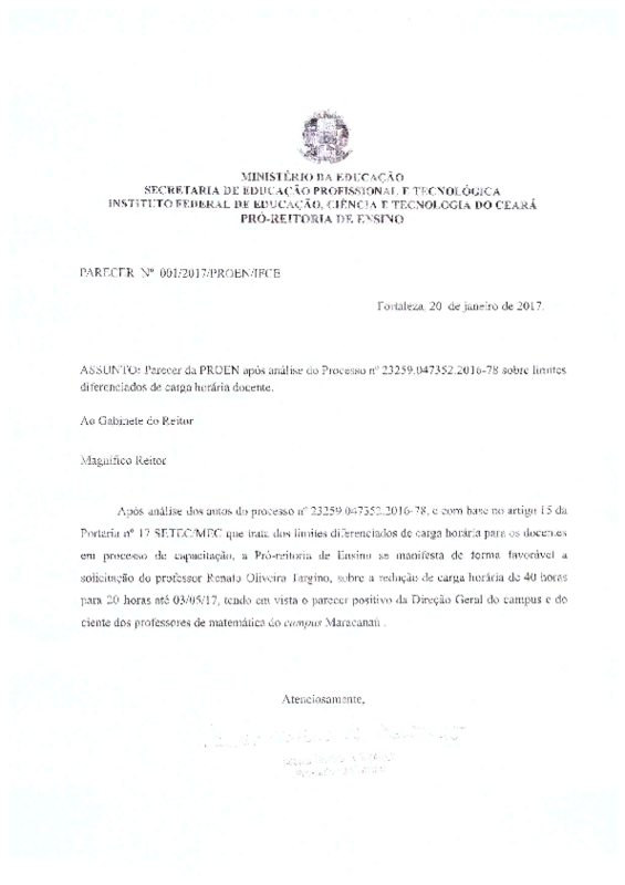 AbertaParecer No 001/2017/PROEN/IFCE