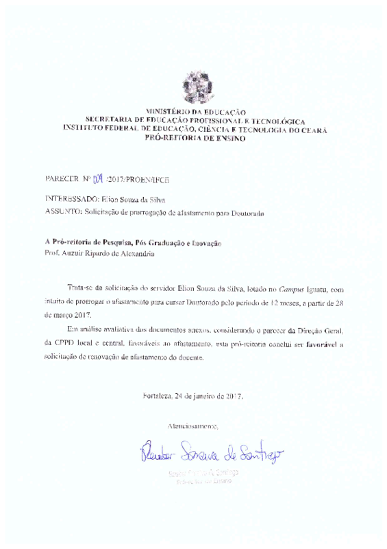 Prorrogação do Doutorado do servidor Elion Souza da Silva - Campus Iguatu.