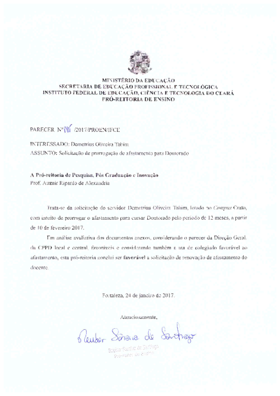 Prorrogação do Doutorado do servidor Demetrius Oliveira Tahim - Campus Crato.
