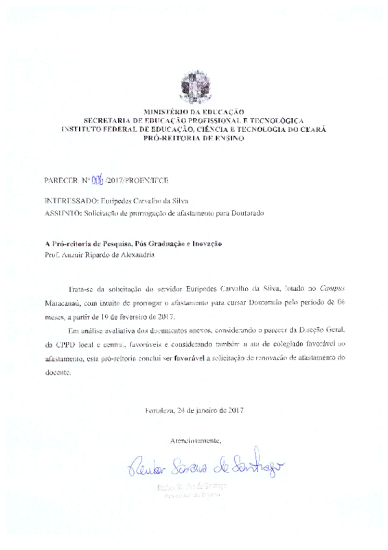 Prorrogação do Doutorado do servidor Eurípedes Carvalho da Silva - Campus Maracanaú.