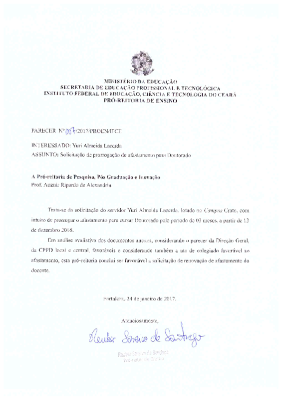Prorrogação do Doutorado do servidor Yuri Almeida Lacerda - Campus Crato.