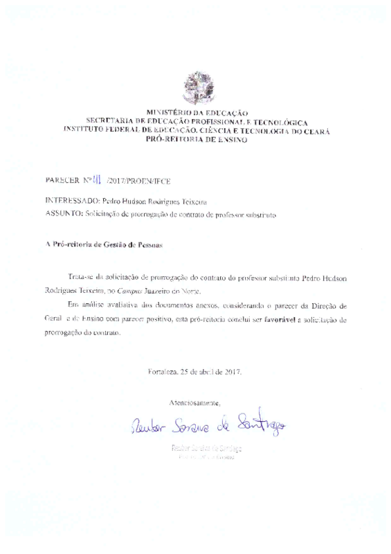 Prorrogação de Professor substituto: Pedro Hudson Rodrigues Teixeira - Campus Juazeiro do Norte.