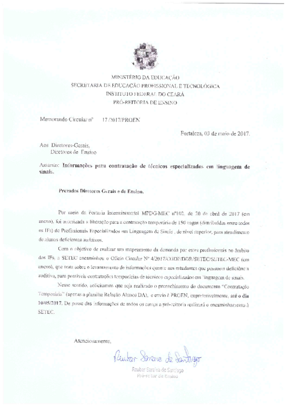 AbertaMemorando Circular Nº 017/2017/PROEN