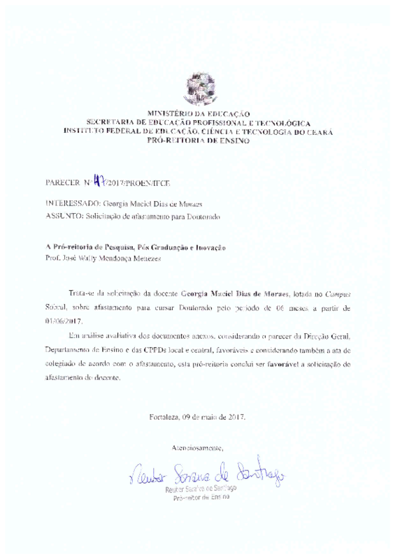 Solicitação de afastamento para Doutorado da Docente Geórgia Maciel Dias de Moraes - Campus Sobral.