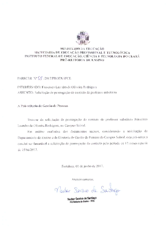 Solicitação de prorrogação de contrato de professor substituto: Francisco Leandro de Oliveira Rodrigues - Campus Sobral.
