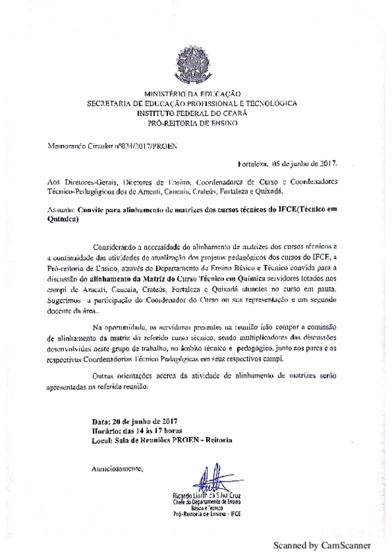 Convite para alinhamento de matrizes dos cursos técnicos do IFCE (Técnico em Química).