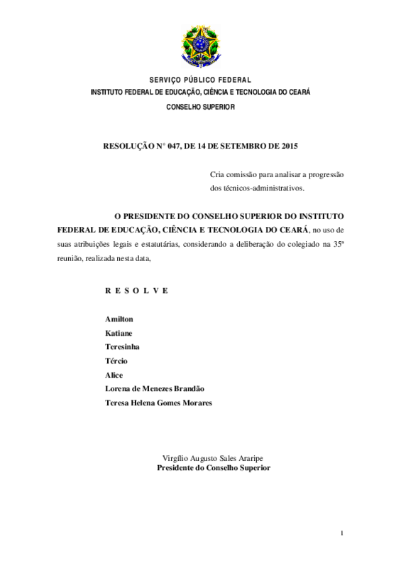 AbertaResolução N° 47/CONSUP/IFCE, DE 14 de set de 2015