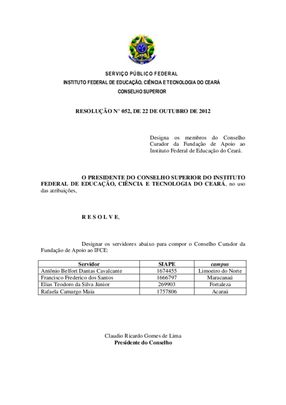 AbertaResolução N° 52/CONSUP/IFCE, DE 22 de out de 2012