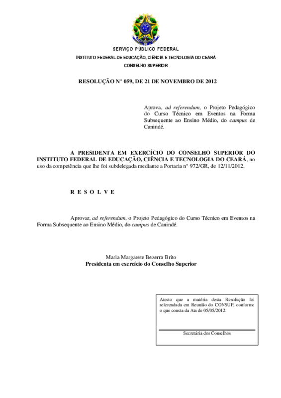 AbertaResolução N° 59/CONSUP/IFCE, DE 21 de nov de 2012