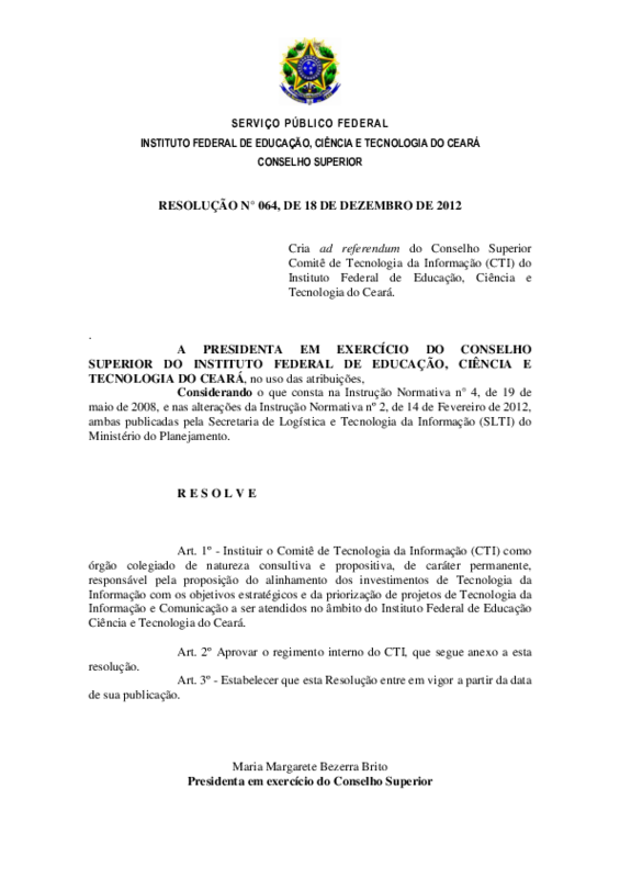 AbertaResolução N° 64/CONSUP/IFCE, DE 18 de dez de 2012