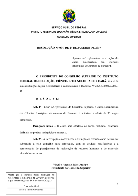 AbertaResolução N° 004/CONSUP/IFCE, DE 30 de jan de 2017