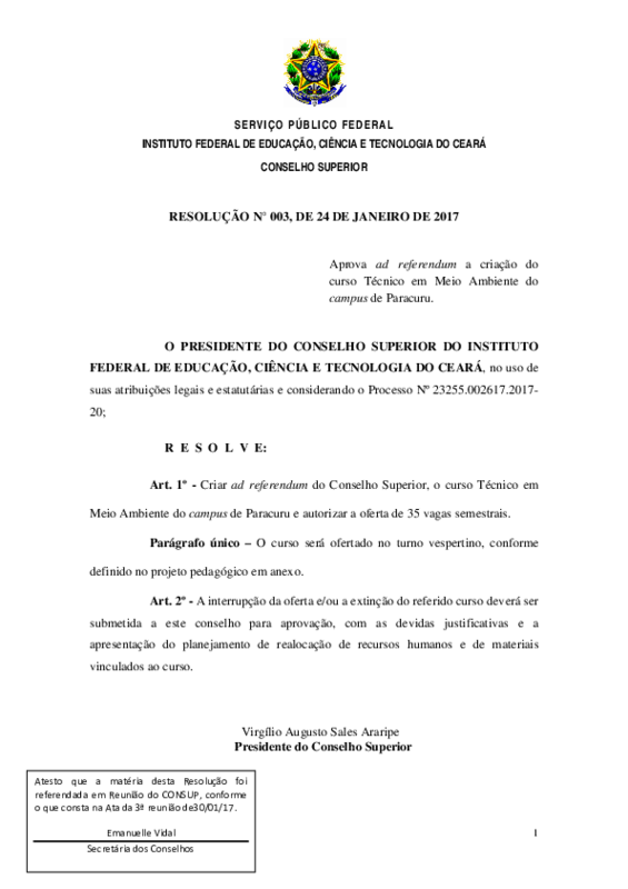 AbertaResolução N° 003/CONSUP/IFCE, DE 30 de jan de 2017