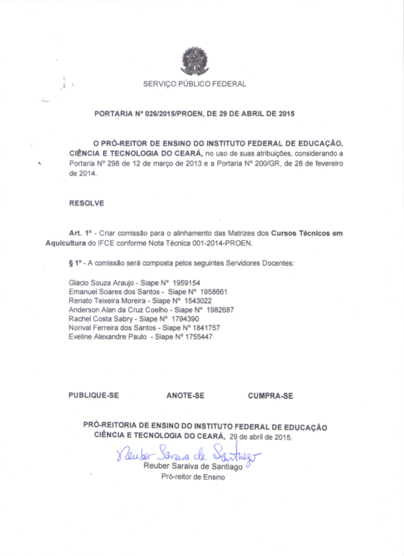 AbertaPortaria No. 26/2015/PROEN, de 29 de Abril de 2015