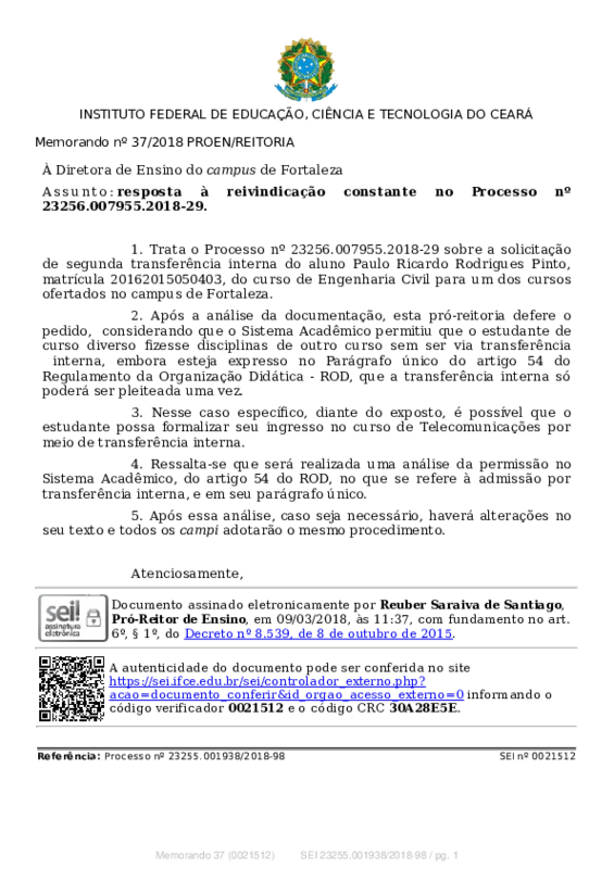 AbertaMemorando nº 37/2018 PROEN/REITORIA