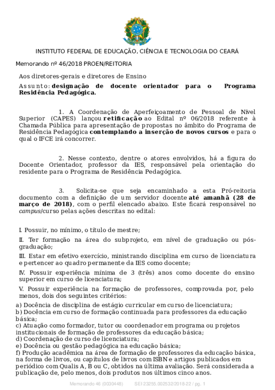AbertaMemorando nº 46/2018 PROEN/REITORIA