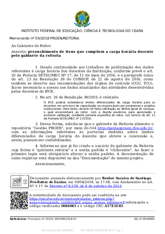 AbertaMemorando nº 59/2018 PROEN/REITORIA