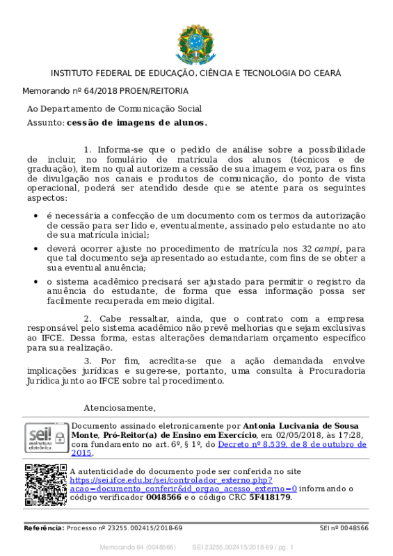 AbertaMemorando nº 64/2018 PROEN/REITORIA