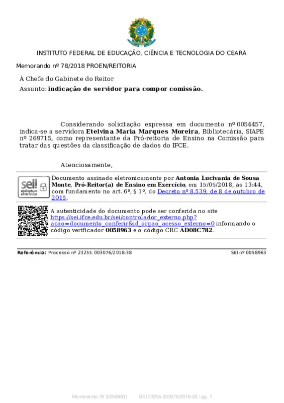 AbertaMemorando nº 78/2018 PROEN/REITORIA