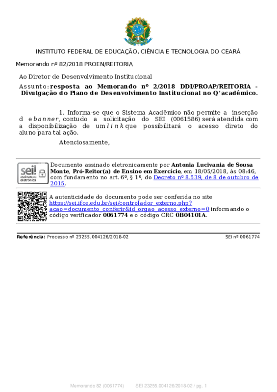 AbertaMemorando nº 82/2018 PROEN/REITORIA