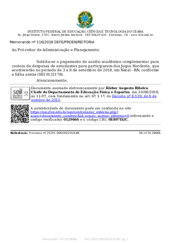 AbertaMemorando nº 116/2018 DEFE/PROEN/REITORIA