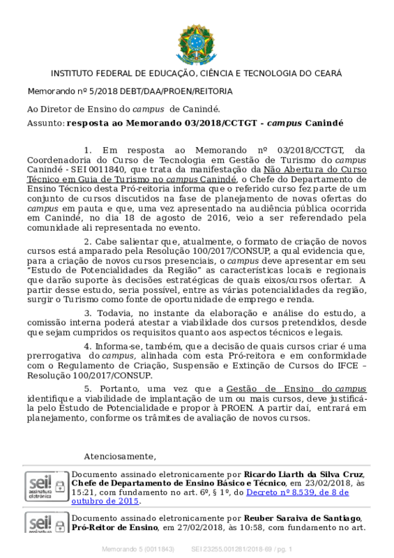 AbertaMemorando nº 5/2018 DEBT/DAA/PROEN/REITORIA