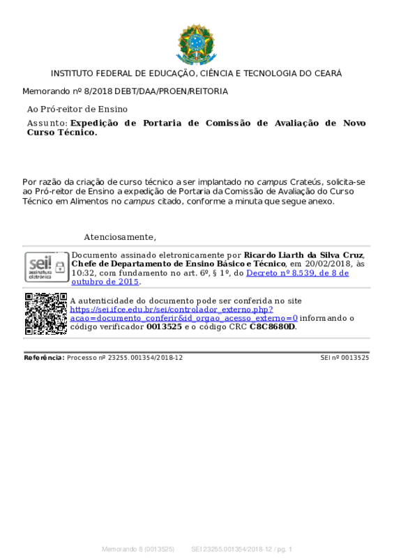 AbertaMemorando nº 8/2018 DEBT/DAA/PROEN/REITORIA