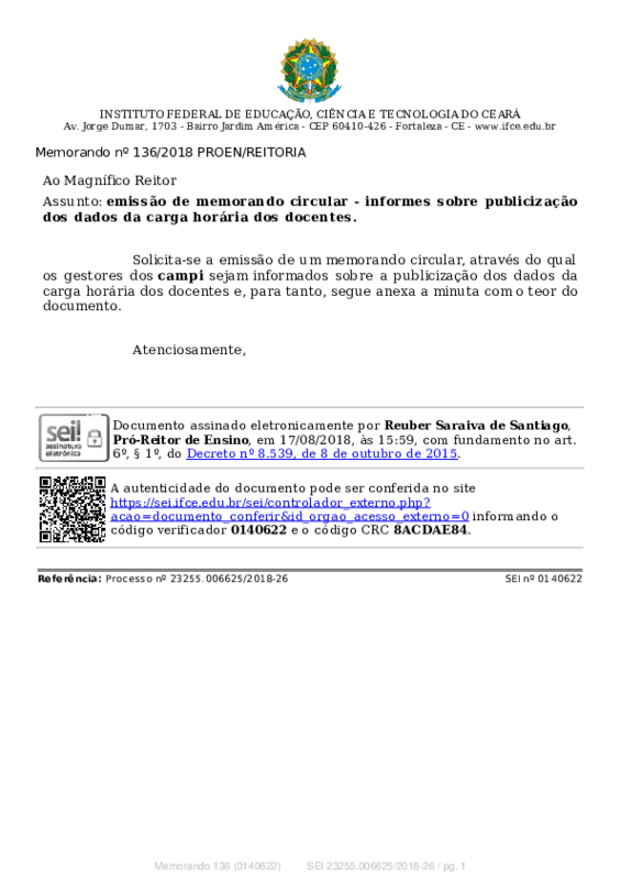 AbertaMemorando nº 136/2018 PROEN/REITORIA