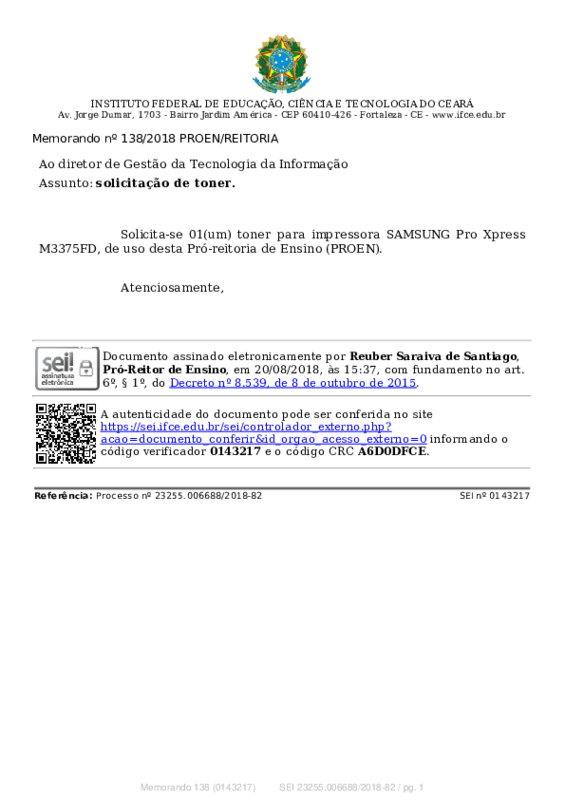 AbertaMemorando nº 138/2018 PROEN/REITORIA