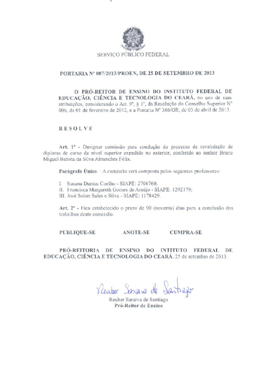 AbertaPORTARIA Nº 007/2013/PROEN, DE 25 DE SETEMBRO DE 2013