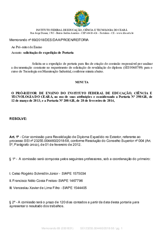 AbertaMemorando nº 69/2018/DES/DAA/PROEN/REITORIA