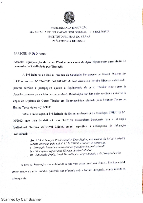 AbertaParecer n° 010/2015/PROEN/IFCE